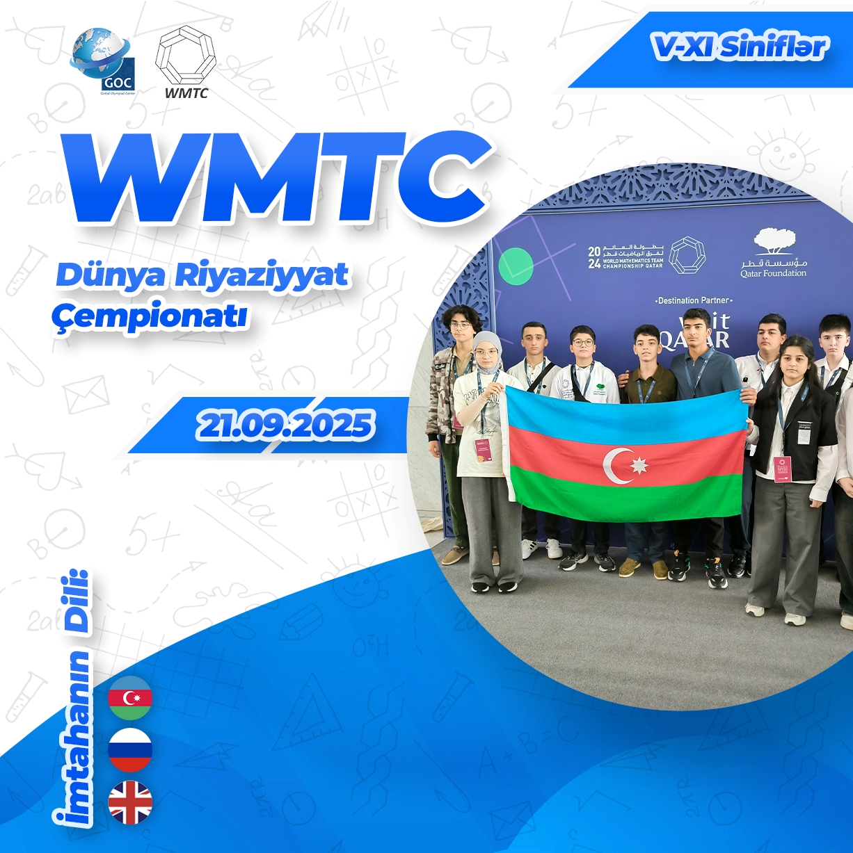 Qeyd: Olimpiadanın və ya yarışmanın öncədən təyin olunmuş gün və saatı dəyişmə halı Global Olympiad Center tərəfdə qalır. GOC ölkə ərazisində baş vermiş hər hansı bir böyük tədbir və yaxud da iştirakçı sayına görə imtahanın məkan və saatını dəyişə bilər.
