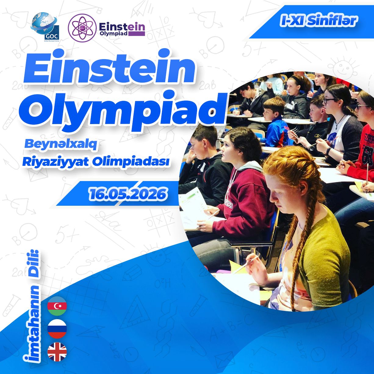Qeyd: Olimpiadanın və ya yarışmanın öncədən təyin olunmuş gün və saatı dəyişmə halı Global Olympiad Center tərəfdə qalır. GOC ölkə ərazisində baş vermiş hər hansı bir böyük tədbir və yaxud da iştirakçı sayına görə imtahanın məkan və saatını dəyişə bilər.